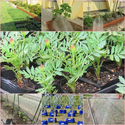 夏野菜に、夏の花、校庭のいたるところに植物が・・・。この天気、水やりをやらずにすませることはできません。たいへん、たいへん。
