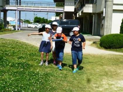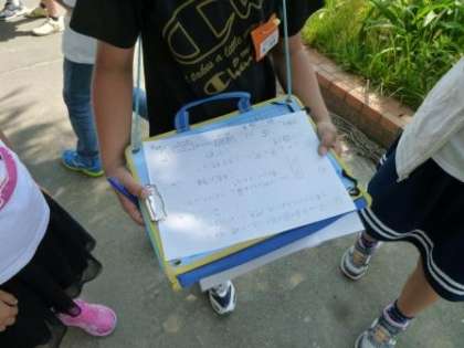 来週の野外学習に向けて,校内でウオークラリーを体験中です。うまくできるかな。