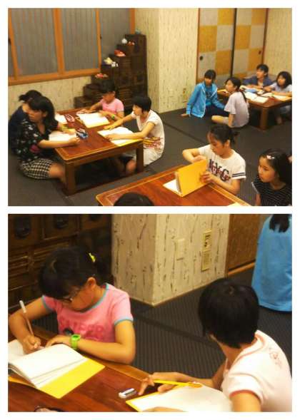 一日の反省を学級委員のとり回しのもとで行っています。部屋に戻ってから連絡することも確認しました。