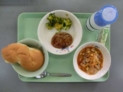 チリコンカン  かぼちゃのサラダ(にゅうたまごなしマヨネーズ)