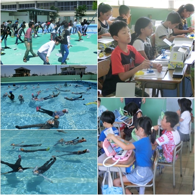 7日(金)は、5・6年生が着衣泳を行いました。いざというときは、「ういてまて」の合い言葉です。