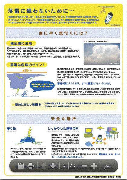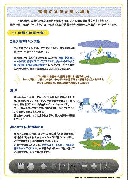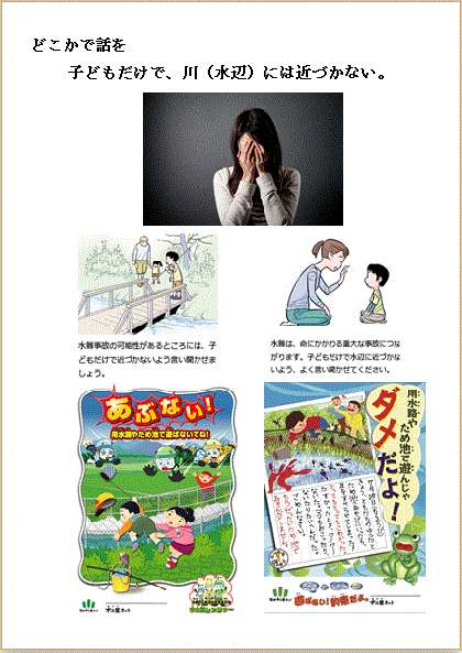 落雷に遭わないようにすることと水辺の事故に気を付けること。