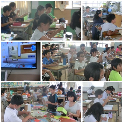 5年生家庭科では、ミシンの使い方の学習です。上糸と下糸のセット方法について、実際にミシンを使って何度も繰り返し練習しました。