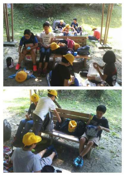 裁判所の見学を終え、官庁街を散策しながら、名城公園に着きました。暑いので、日陰で昼食をとります。