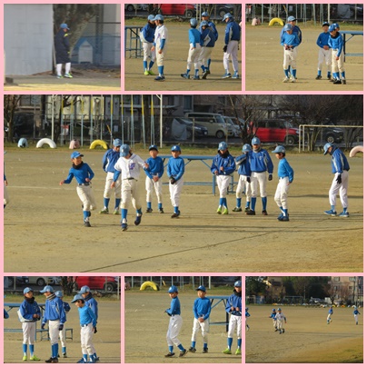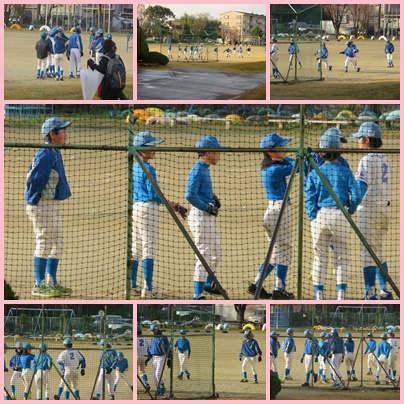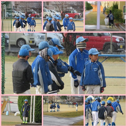 小雪が降る中、野球の練習が始まっています。がんばれ!