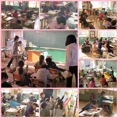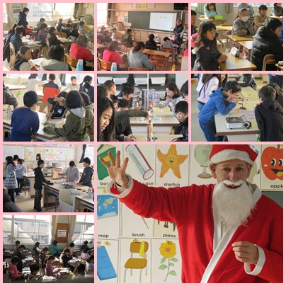 サンタさんに対して笑顔が一杯の5年生、実験で興味深い結果が出て「先生、先生」の4年生、みんな楽しそうに授業を受けていました。