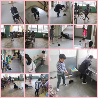 少ない人数で、広い掃除場所を一生懸命にそうじできています。今日は、南舘2階、4年生と2年生を中心に撮影してきました。