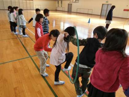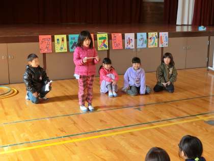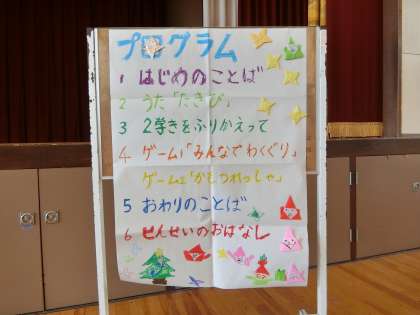 1年生全員で「じゃんけん列車」や「みんなで輪くぐり」等のゲームを楽しく行いました。また,2学期を振り返って,全員がで「きるようになったこと」や「楽しかったこと」を発表しました。