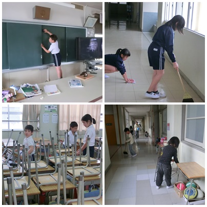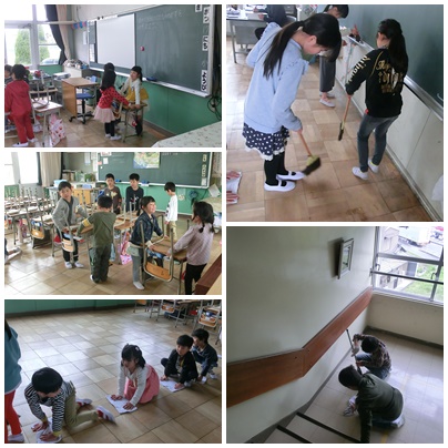 2年生〜6年生までは、黙々と作業に取り組んでいました。広い校舎を少ない人数で清掃をするため、範囲の広い児童もいますが、20分間しっかりと活動を進めました。