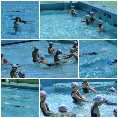 2時間目は3・6年生がプールに入りました。3年生は、ペアでふしうきの練習、6年生はコースに分かれてクロールの練習に励んでいました。