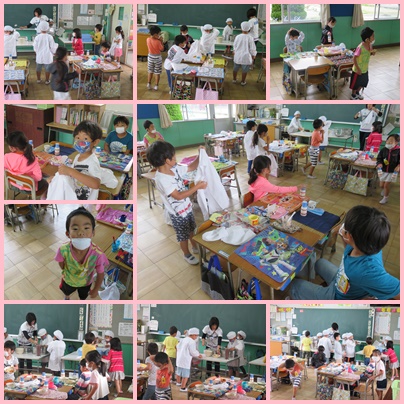 つくし・わかば、1年生のみなさんの給食準備の様子です。