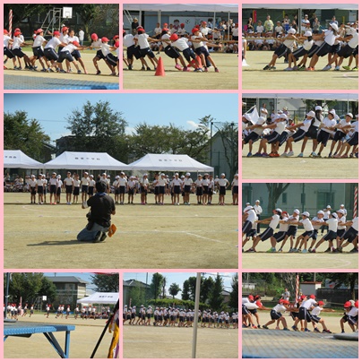 低学年赤組、中学年と高学年白組の勝ちでした。どの勝負もみんないっぱいいっぱいで、力を出し尽くしたと思います。立派でした。