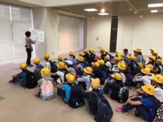 愛知健康の森プラザ健康科学館に到着しました。館内の説明を聞いています。今からグループ行動です。