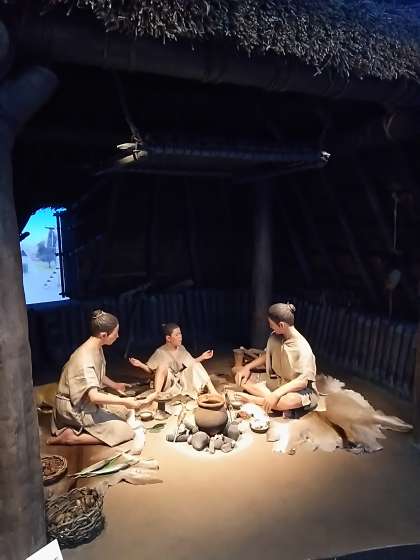 写真は、上から順に、弥生時代、室町時代、そして宿場町だった江戸時代の様子を見学できます。