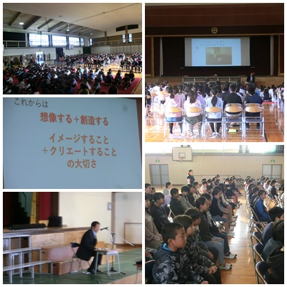 校長先生からは、ものづくりについて、想像すること、創造することを中心に実際の製作物をスライドで示しながら、その大切さについてお話がありました。