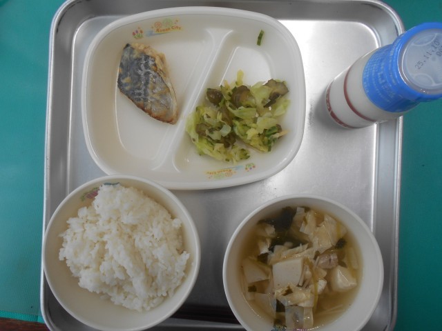 ごはん ぎゅうにゅう  さわらのさいきょうやき しばづけのあえもの ゆばのすましじる エネルギー584kcal