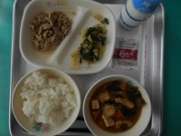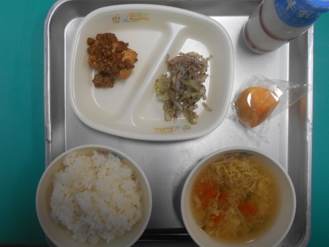 ごはん ぎゅうにゅう なまあげのみそだれかけ あかじそあえ かきたまじる かき エネルギー592kcal