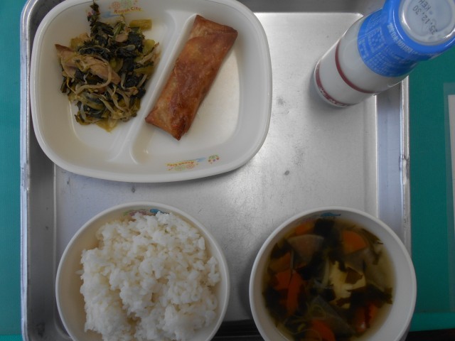 ごはん ぎゅうにゅう あいちのやさいいりはるまき あおないため ちゅうかスープ エネルギー615kcal