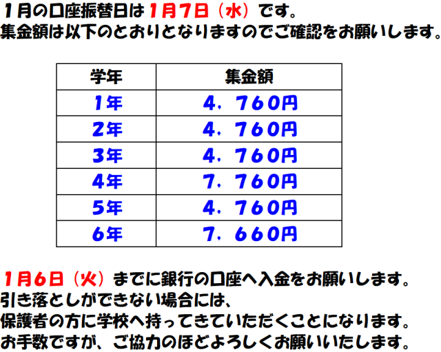 1月7日(水)は口座振替日です(12月23日)