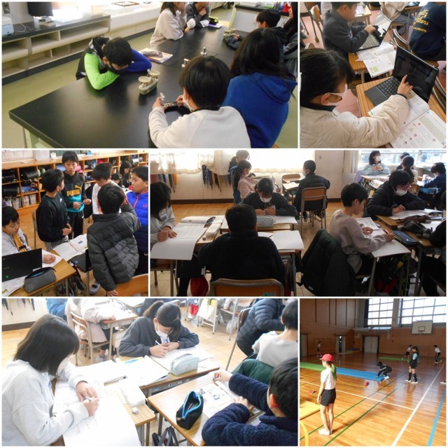 3年生算数「三角形」では、正三角形や二等辺三角形は平面に敷き詰めることができることを知り、敷き詰め模様の中から、いろいろな形を見つけて、友達と伝え合いました。