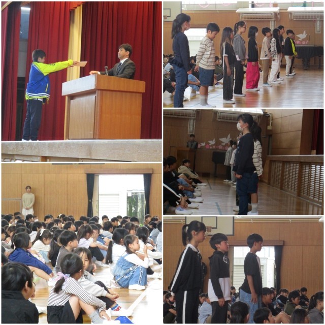 前期学級委員・代表委員・委員会委員長の認証式を行いました。これから学級や学年、学校をよりよくしていこうという意欲が感じられる返事が響きました。みんなで協力し合ってよりよい学校生活が送れるように取り組みます。