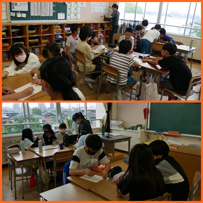 6年生 学活の授業の様子です。今日は係ごとに分かれて話し合っています。