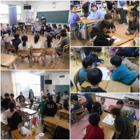 3年生算数「たし算の筆算」では、繰り上がりのあるたし算の問題に取り組み、友達同士で答えを確かめ合っていました。