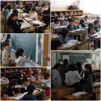 3年生理科「チョウをそだてよう」では、校庭にあるミカンの木の葉にたまごがあるかもしれないとのことで、観察していました。葉の裏を中心に探し、いくつかたまごを見つけることができました。初めて見る児童も多く、ふしぎそうに見入っていました。