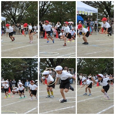 「かけっこ!かけっこ!うれしいな!」では、フラフープやジャンプなどいろいろな動きをしながらコースを走り抜けました。