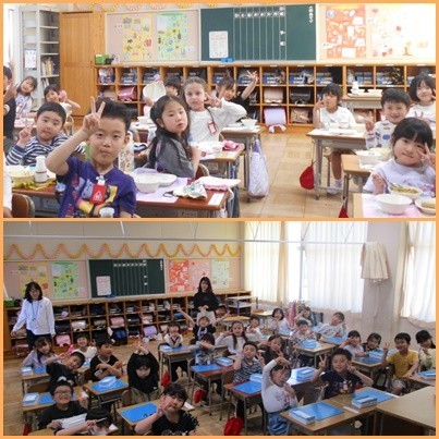 今日から給食が始まりました。はじめての給食でしたが、たくさん食べていました。