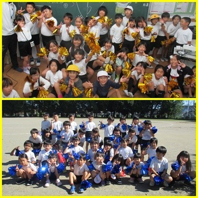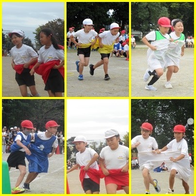 二人一組となって走った「デカパンきょうそう」では、ペアの友だちと協力する姿がたくさん見られました。それぞれのチームで作戦を考えるなど、チーム力を高めることができましたね。最後に『みんなでピース』ができてよかったですね