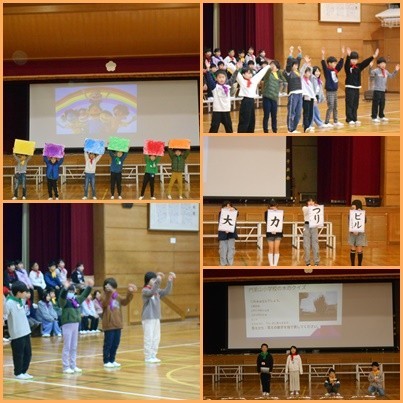 本日、栄養の先生に来ていただいて、「バランスよく何でも食べよう」というめあてで、お話を聞きました。