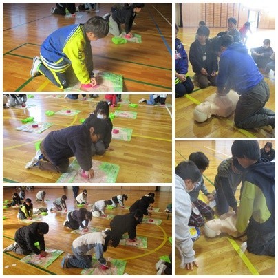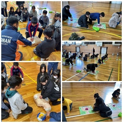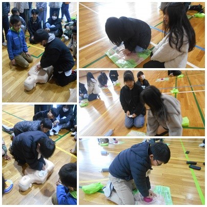 本日、江南消防署の方にお越しいただき応急手当講習を行いました。全員が模型を使って胸骨圧迫の練習をしました。初めは手の付け根で押すことや体重を乗せることが難しく苦戦する様子が見られましたが、消防署の方によるアドバイスを受けてリズムよくできるようになりました。また、複数の人で変わりながら行うことで体力に自信がない人でも絶え間なく胸骨圧迫ができることも学びました。