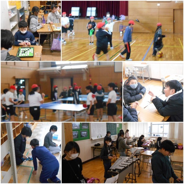 小雪の舞う寒い中でしたが、競わず、みんなで楽しみました。6年生が1年2年生に教えてあげる場面もあり、みんなで楽しめる会になりました。