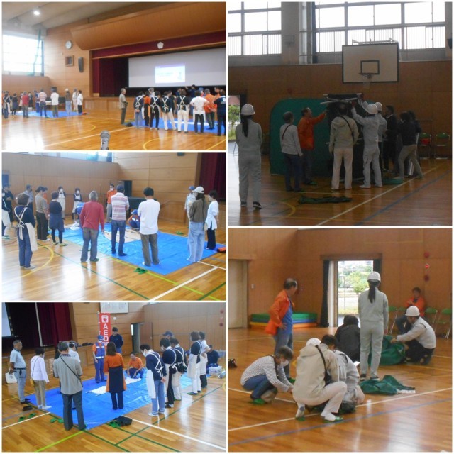 本校体育館にて門弟山小学校区自主防災訓練が行われました。本来であれば、運動場や中庭も使って様々な訓練やシミュレーションをする予定でしたが、雨天のため、体育館内での避難所設営訓練、応急手当訓練のみの活動となりました。