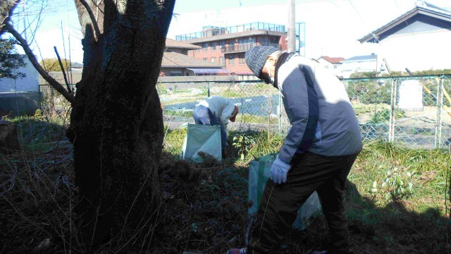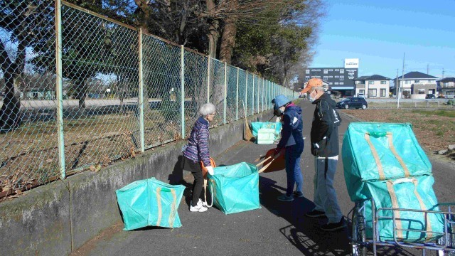 寒さの厳しい中、落ち葉ボランティアの皆様が、
