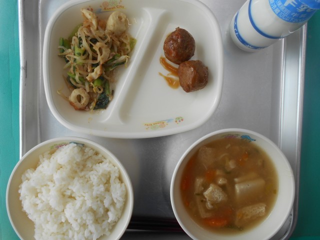 ごはん ぎゅうにゅう ごぼういりつくね おかかあえ もちいりみぞれじる エネルギー575kcal