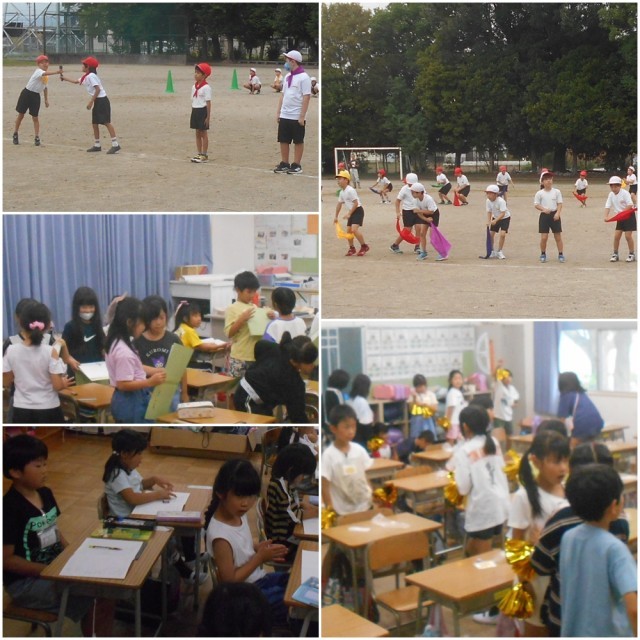 2学期初回のなかよしグループ活動で楽しみました。今回も6年生を中心に教室内または運動場でみんなが楽しめる遊びを提案しました。日中も涼しくなり、運動場での思い切り走る姿も見られました。