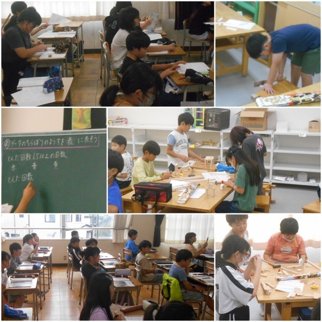 4年生図工「のこぎりギコギコ」では、のこぎりの安全な扱い方を知り、木を思いのままに組み合わせたりして、想像をふくらませていました。