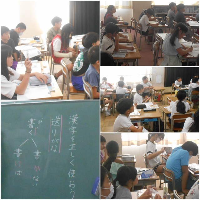 1年生国語では、漢字の学習も進めています。書き順や字形に気をつけながら、読んだり書いたりして覚えています。教材文や生活の中で使いながら習得をめざします。