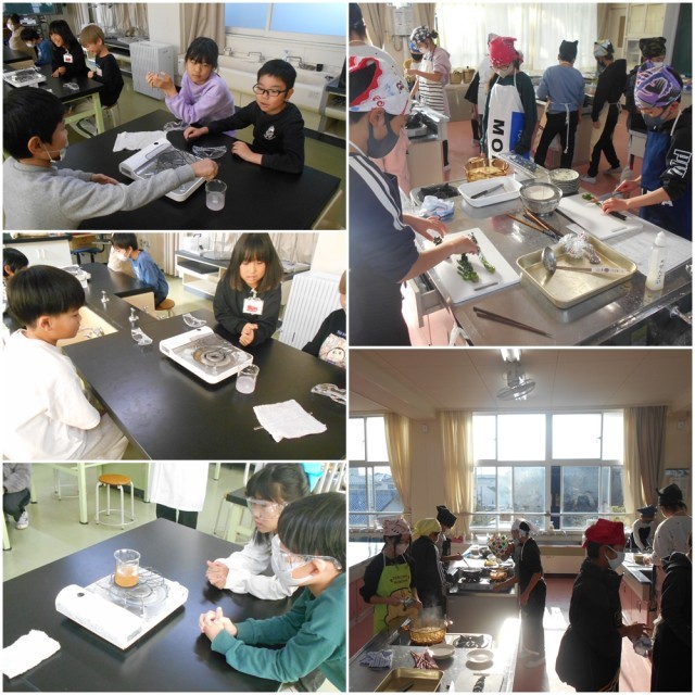 5年生家庭「おいしい楽しい調理の力」では、野菜やいもの種類によるゆで方の違いなどをもとに、調理の実習計画を立ててきました。今日は、切り方やゆで方、調理の手順を確認しながら、協力して実習に取り組んでいました。