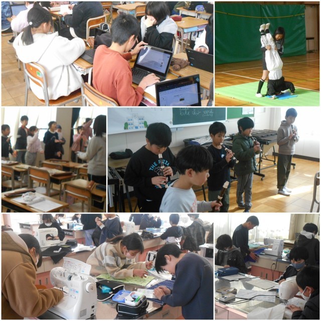 3学期2日目です。教科の授業を時間割通りにすすめています。風が強く、寒さを感じながらも体育の授業は運動場で行い、運動量を確保して体を温めています。