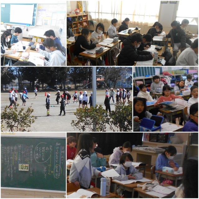 3学期もちょうど折り返しの時期となっています。各教科では、これまで学習したことを振り返る授業もあり、漢字の書き取りや計算問題などに取り組む学年もありました。