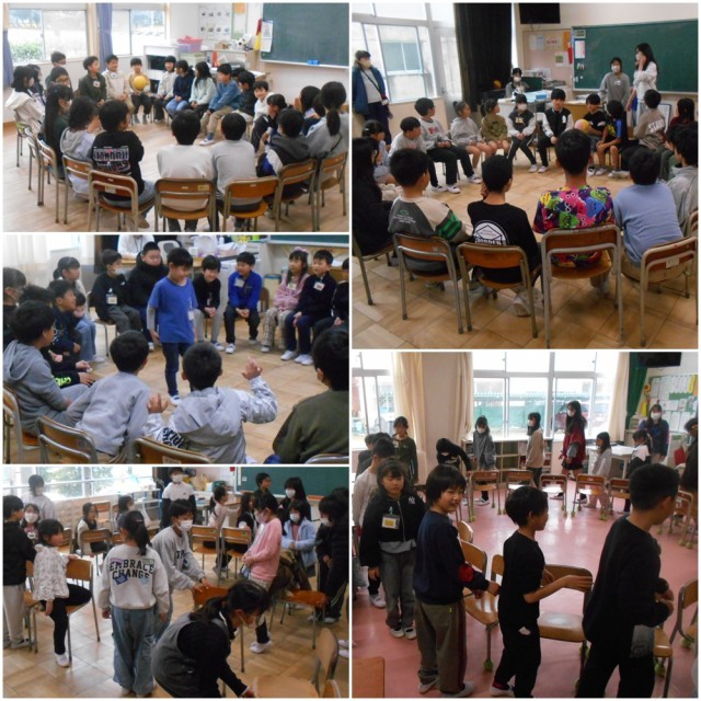 本年度最終となる「なかよしグループ」活動を行いました。雨天のため、運動場は使えず、すべてのグループが教室での活動となりました。「新聞じゃんけん」や「ばくだんゲーム」、「いすとりゲーム」などで楽しみました。