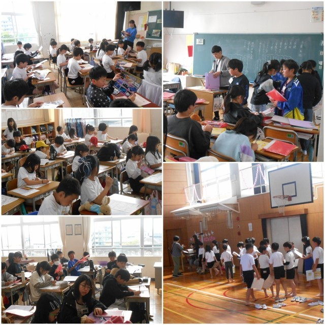 明日1~5年生が修了式を迎えます。各学年・学級では、荷物の整理や大掃除、おわかれ会などをしていました。
