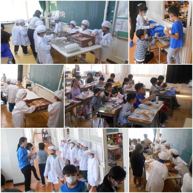 6年生にとっては、小学校最後の給食となりました。各学級では、机の隊形を工夫して、楽しく思い出を語りながら会食しました。