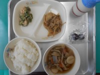 わかめごはん ぎゅうにゅう とりにくとさつまいものあまがらめ つるむらさきのしらあえ のっぺいじる エネルギー607kcal のっぺい汁とは野菜や肉などを煮て、でんぷんでとろみをつけて作る汁物です。...
