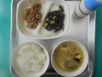 ごはん ぎゅうにゅう ぶたにくのしょうがやき ひじきのツナあえ しろみそしる エネルギー622kcal ひじきなどの海藻は、海の中で光合成をする植物です。ひじきは茎の部分にあたる「長ひじき」と、葉...