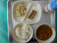 ごはん ぎゅうにゅう ポークカレー ウインナー だいずサラダ エネルギー693kcal 給食のカレーに一番たくさん入っている食材は、玉ねぎです。大量の玉ねぎを煮込んで作るので、うま味が増しておいし...