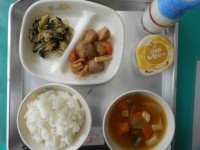 ごはん ぎゅうにゅう ハンバーグのおろしソース あおなのしらすあえ さつまじる エネルギー573kcal しらすはいわしの稚魚で、カルシウムやたんぱく質が豊富に含まれており、丈夫な骨づくりに役立ち...